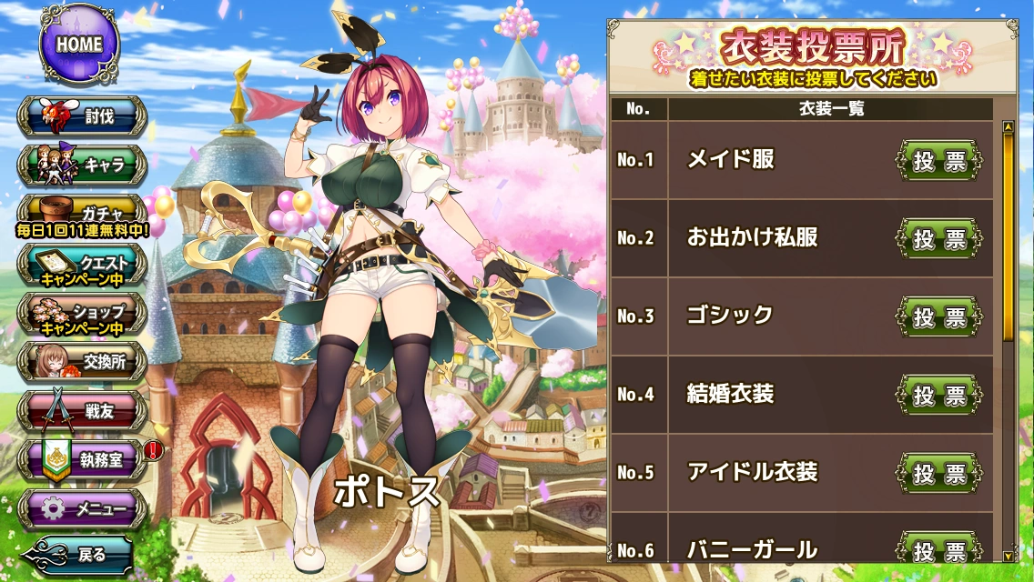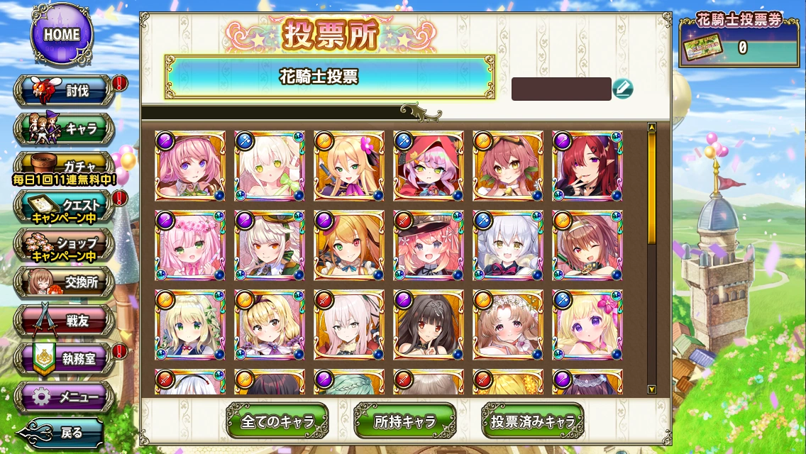 As the featured event, the player can earn 1 Flower Knight Voting Ticket / 花騎士投票券 and 1 Costume Voting Ticket / 衣装投票券 from the Event Quests.