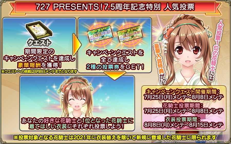 727 PRESENTS! 7.5th Special Anniversary Popularity Poll / 727 PRESENTS!7.5周年記念特別 人気投票 is a mini event. As the featured event, it was a Poll event.