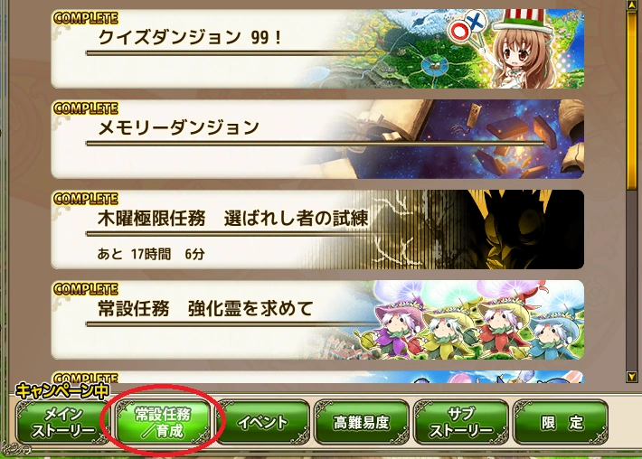 Permanent / Training Mission (常設任務/養成) types include Missions that are either permanently available, provide materials that strengthen Flower Knights, or both. This page shows these types of missions in the same order as they appear in the Permanent / Training Mission tab. Note that some banners are not always available.