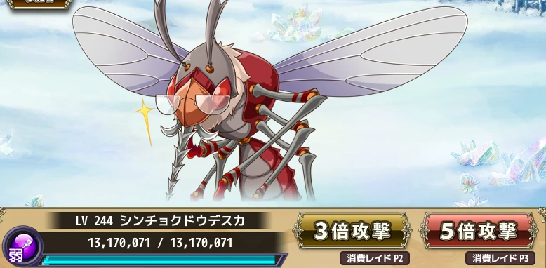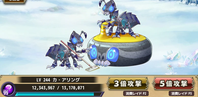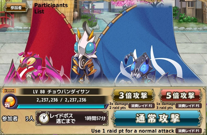 - 弱攻撃 / Weak Attack : Spend one raid point to fight the raid boss at 1x attack power.