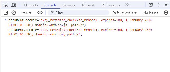 document.cookie="ckcy_remedied_check=ec_mrnhbtk; domain=.dmm.com; path=/"; document.cookie="ckcy_remedied_check=ec_mrnhbtk; domain=.dmm.XXXXco.jp; path=/";