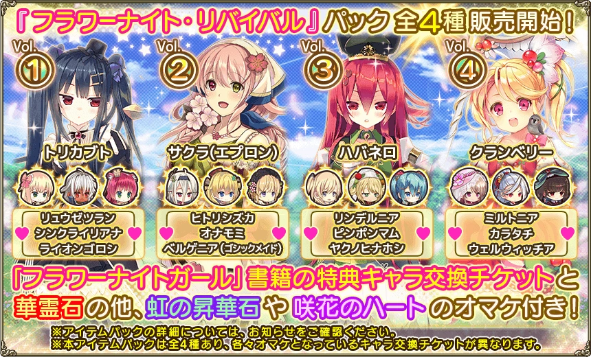 Flower Knight Revival Item Packs were discontinued on 2026/01/13.